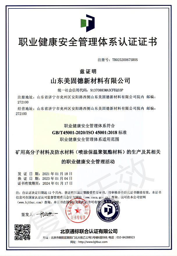 山東美固德新材料有限公司為高新技術企業(yè),坐落于中國工業(yè)強區(qū)、大禹定九州之地的山東省級工業(yè)園-兗州化學助劑產業(yè)園。公司2011年始建于青島,2016年為濟寧市重點招商項目落戶于兗州,公司專注于為煤礦安全生產提供可靠的礦用化學材料和解決方案。公司2018年同青島科技大學(原青島化工學院)高分子科學與工程學院簽訂技術合作協(xié)議,分別在兗州和青島設立了研發(fā)實驗室和應用發(fā)展實驗室,并建立了研究生實踐基地。2021年3月12日與中國聚氨酯協(xié)會特聘專家團隊簽訂了戰(zhàn)略合作協(xié)議,致力于聚氨酯高端領域的配方設計、生產及應用,為生產優(yōu)質的產品提供強有力的技術保障。