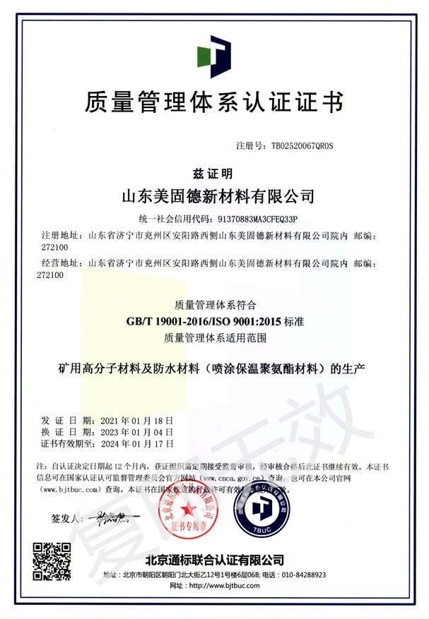 山東美固德新材料有限公司為高新技術(shù)企業(yè),坐落于中國工業(yè)強區(qū)、大禹定九州之地的山東省級工業(yè)園-兗州化學(xué)助劑產(chǎn)業(yè)園。公司2011年始建于青島,2016年為濟寧市重點招商項目落戶于兗州,公司專注于為煤礦安全生產(chǎn)提供可靠的礦用化學(xué)材料和解決方案。公司2018年同青島科技大學(xué)(原青島化工學(xué)院)高分子科學(xué)與工程學(xué)院簽訂技術(shù)合作協(xié)議,分別在兗州和青島設(shè)立了研發(fā)實驗室和應(yīng)用發(fā)展實驗室,并建立了研究生實踐基地。2021年3月12日與中國聚氨酯協(xié)會特聘專家團隊簽訂了戰(zhàn)略合作協(xié)議,致力于聚氨酯高端領(lǐng)域的配方設(shè)計、生產(chǎn)及應(yīng)用,為生產(chǎn)優(yōu)質(zhì)的產(chǎn)品提供強有力的技術(shù)保障。